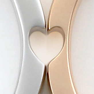 一見シンプルなデザインながらふたりのリングを重ねると