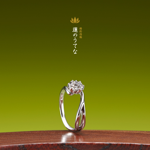 二重に巻いた12枚の蓮の花びらがダイヤモンドを包み込むように