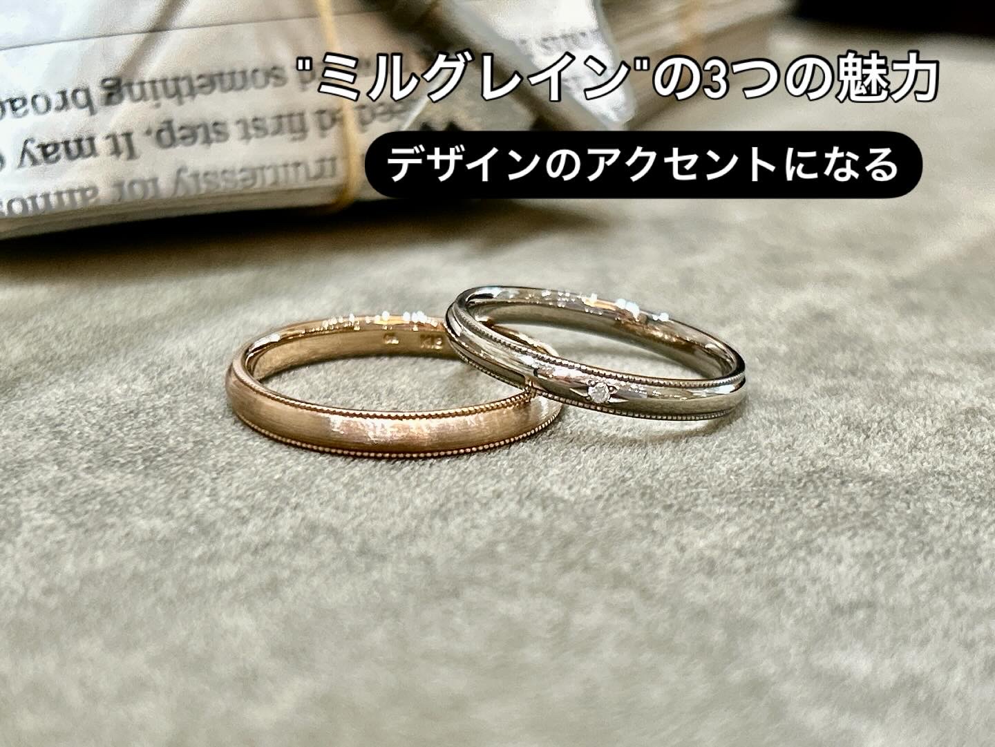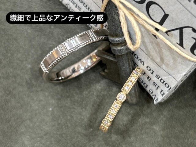 ミルグレインは、リングの縁や装飾部分に刻まれた