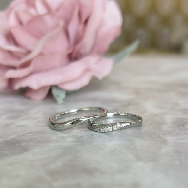 指を美しく見せてくれる安心感のあるウエーブラインの結婚指輪