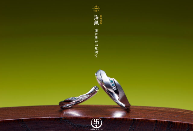 男性用では夜の海の波と水面を顕す結婚指輪です