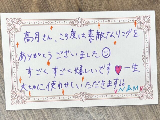 Nさま♡Mさま、この度は素敵なおふたりの指輪選びをお手伝いさせていただきありがとうございます*