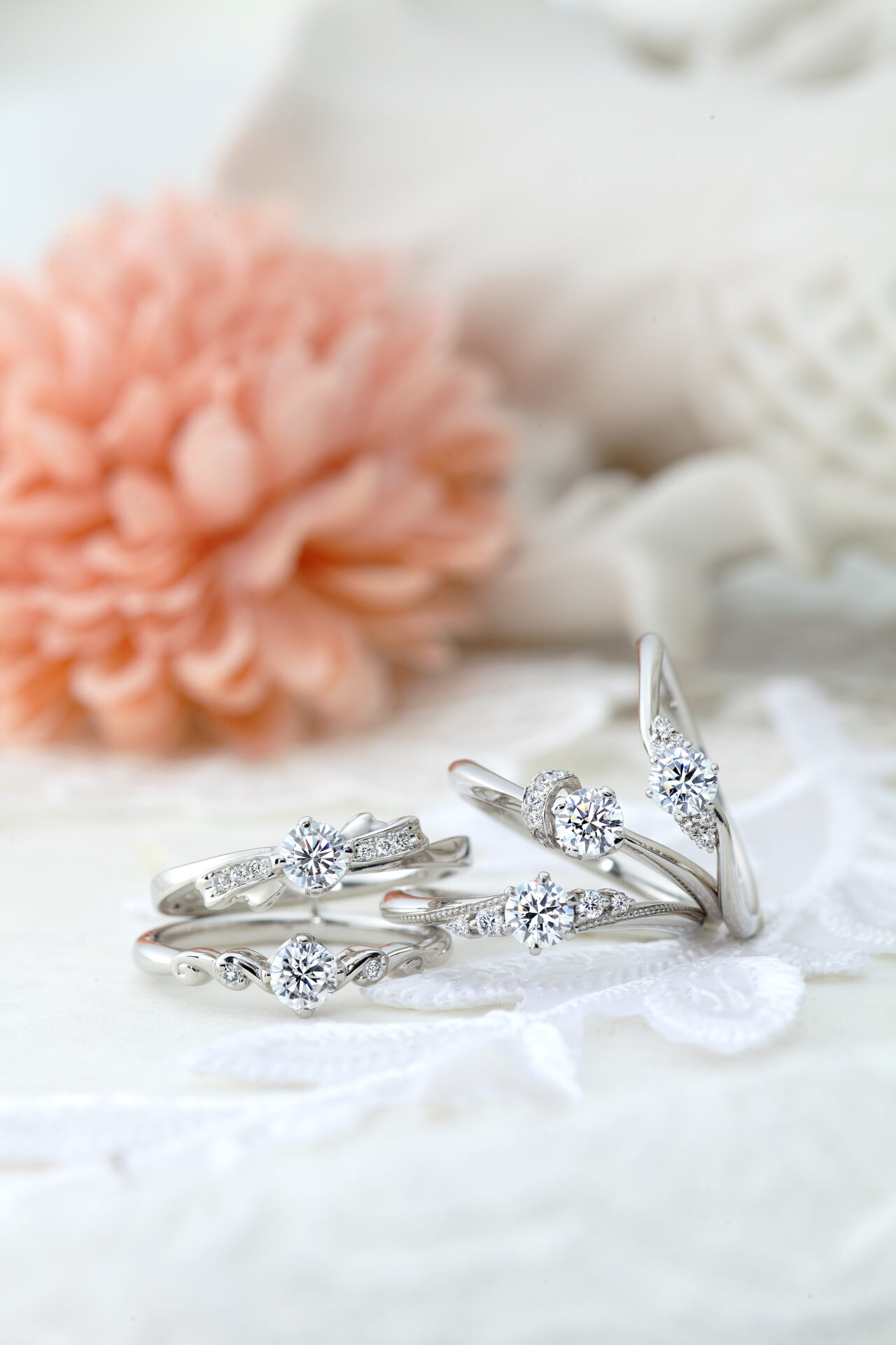 エンゲージリングは可愛らしいリボンのデザインに