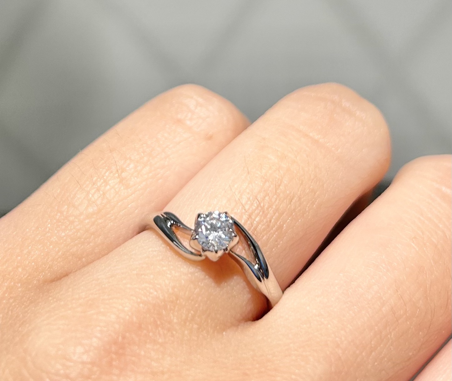 なごり雪という花を雪の結晶にも見えるようにデザインされた婚約指輪