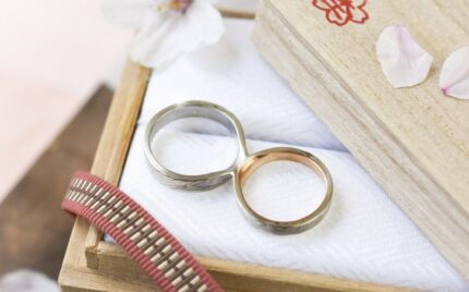 一つのリングをふたりで分かち合う指輪作り体験も。