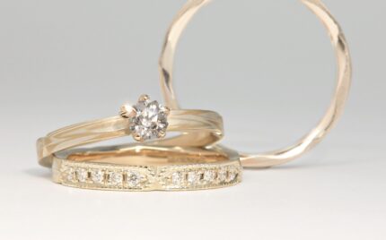 400年の歴史を誇る幻の伝統技法を形に。江戸時代に考案された「幻の技術」木目金(杢目金)の結婚指輪・婚約指輪。色の異なる金属を幾重にも重ね合わせ、丹念に彫って鍛え、美しい木目の文様を作り出していきます。【世界にひとつだけの】リングを。